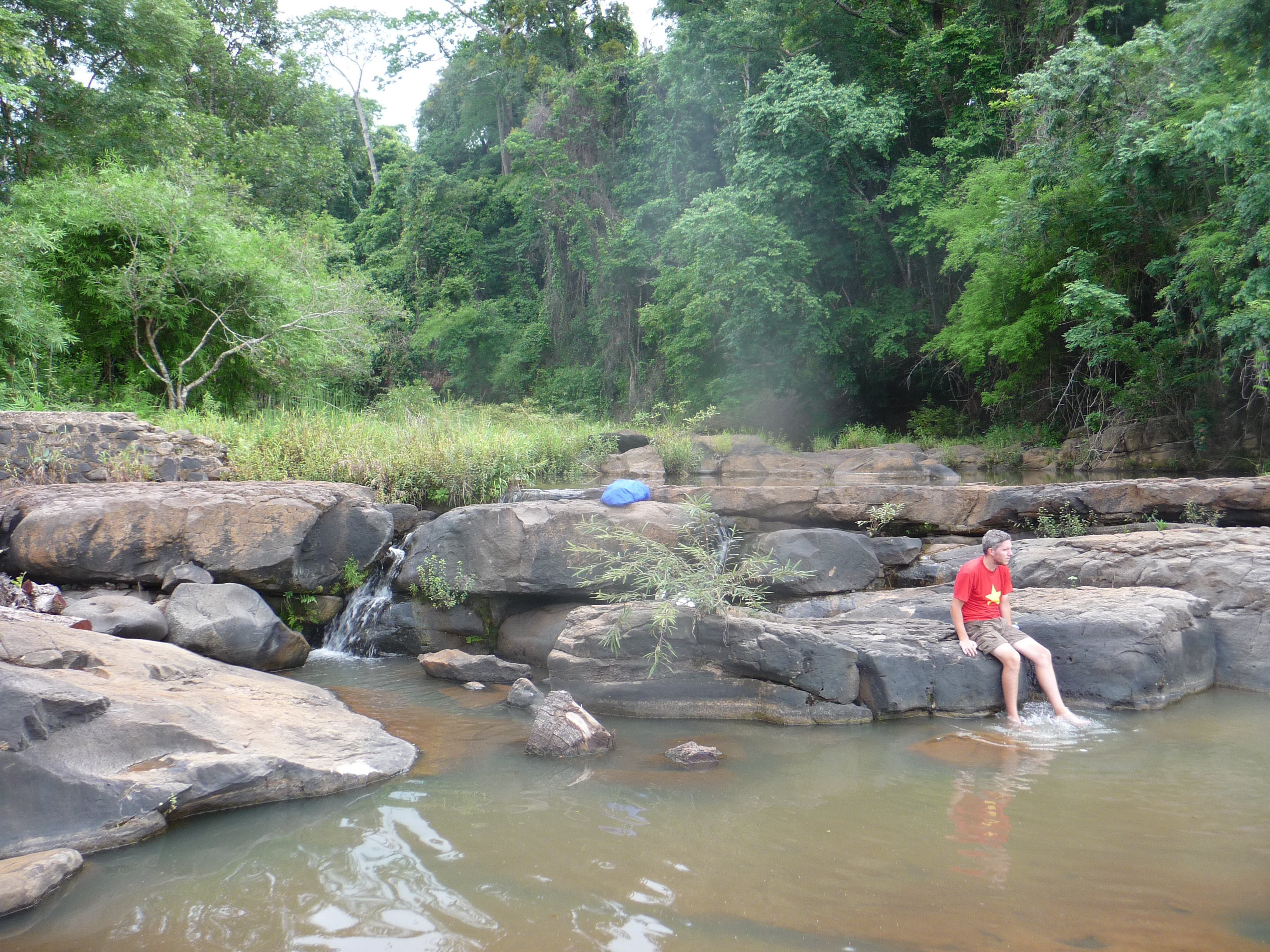 in tad lo i met mark, a fellow cyclist from the netherlands, and together we went to the top of one of the waterfalls. there was hardly any water at that time but the pools were inviting to dip in the feet.